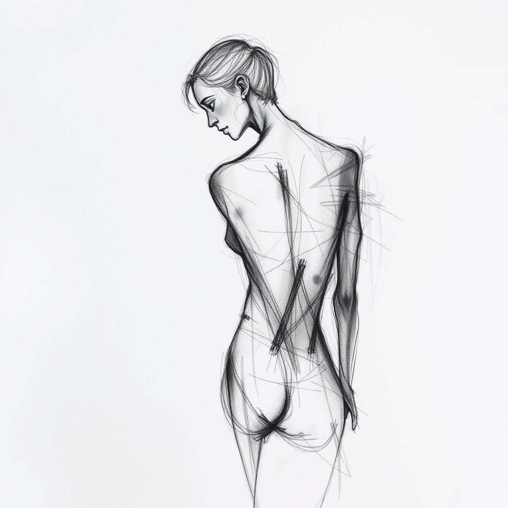 Explore the foundational beauty of form through intimate, hand-drawn charcoal studies that reveal the artist's initial spark of inspiration and technical mastery.